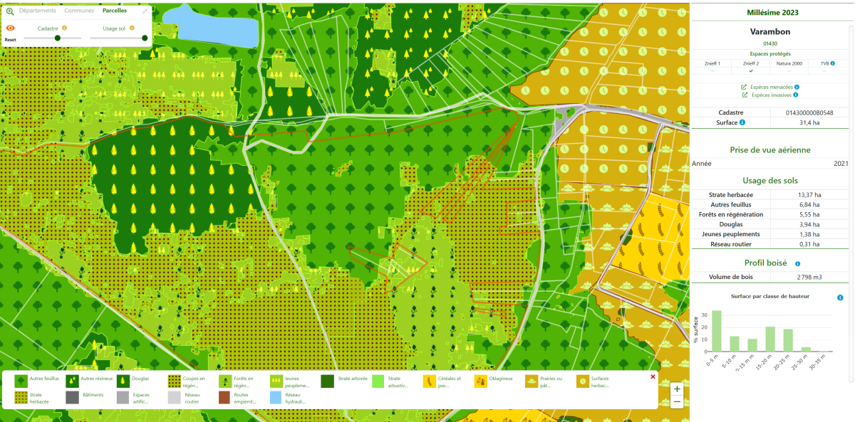 Découvrez OFTerritoire, une solution révolutionnaire destinée aux entreprises privées souhaitant optimiser la gestion et l’analyse de leurs espaces fonciers et ressources naturelles. Avec une vision cartographique détaillée et une couverture du sol déclinée en 53 catégories d’usage, OFTerritoire permet une connaissance approfondie de vos zones d’intérêts qu’elles soient sous forme d’un parcellaire cadastrale, de géométries sous shapfiles ou dessinées à la main levée. Mesurez la surface et le volume de bois sur pied, suivez les cultures agricoles, identifiez les espaces naturels protégés, et accédez à des données climatiques et de biodiversité actualisée.